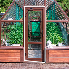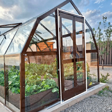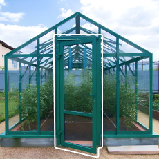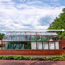 - Ширина 3,5 м и высота 2,4 м формируют просторный внутренний объём. Увеличенное воздушное пространство стабилизирует микроклимат, вам будет комфортно работать внутри в полный рост, а растения получат больше света и воздуха, при этом конструкция сохраняет гармоничные пропорции и чёткий силуэт.