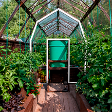- Жалюзийные и откидные форточки в торец. Обеспечивают сквозное проветривание, растения получают достаточный приток воздуха и не перегреваются.