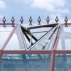 - Две форточки в крыше (форточный блок). Верхнее расположение усиливает естественную вентиляцию, вы сможете поддерживать комфортную температуру без сложных систем и сохранить светопрозрачную крышу без перегрева.